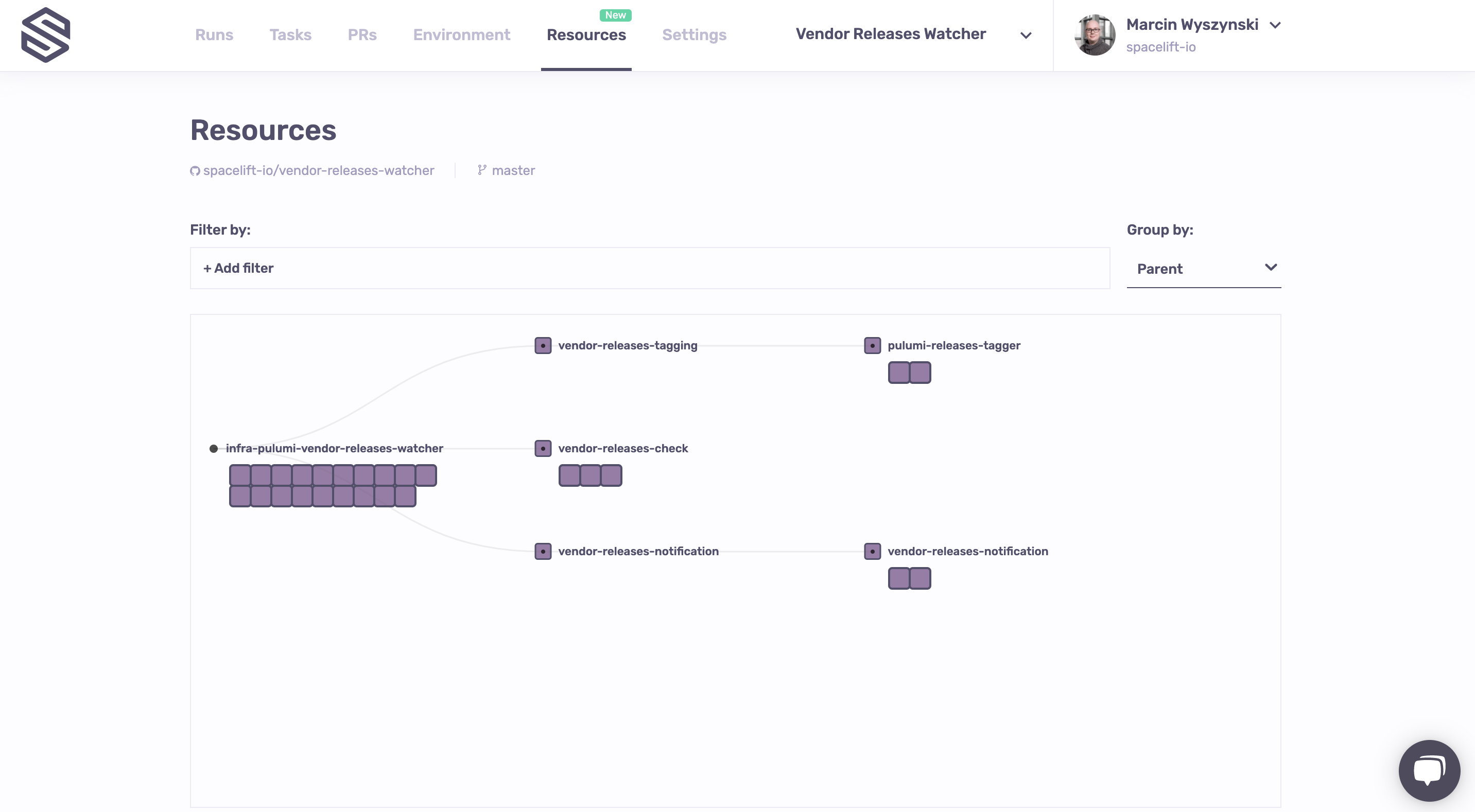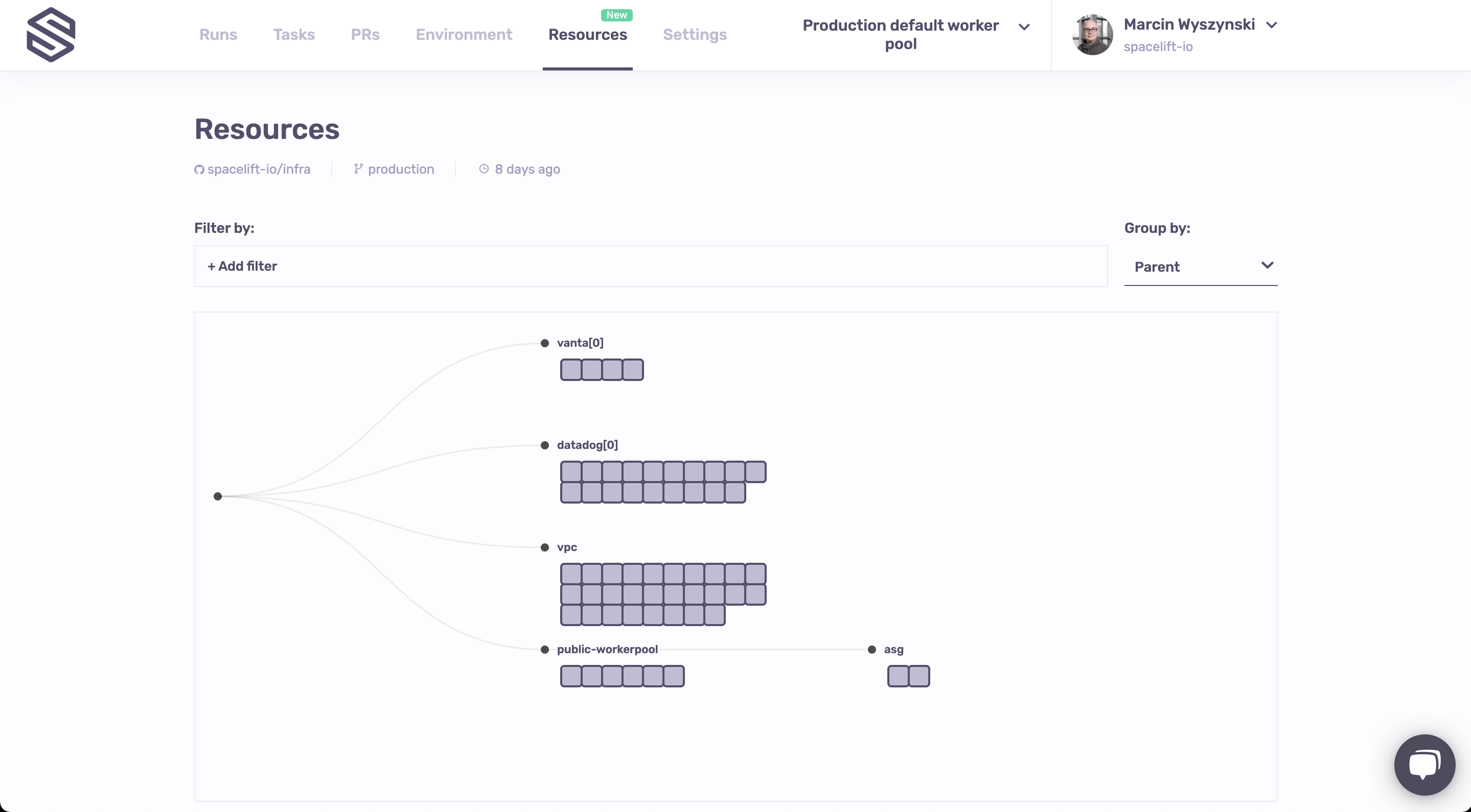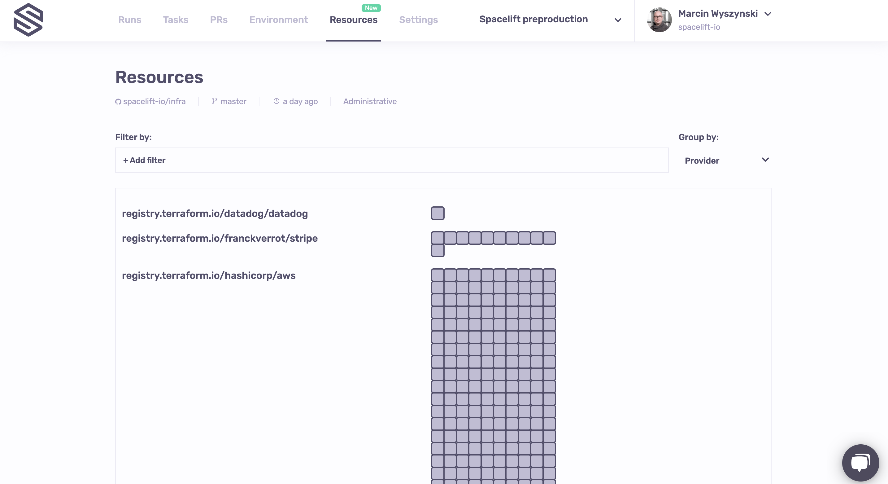The Resources view is the result of multiple months of meticulous work understanding and documenting the lifecycle of each resource managed by Spacelift, regardless of the technology used - Terraform, Terragrunt, Pulumi or AWS CloudFormation.
