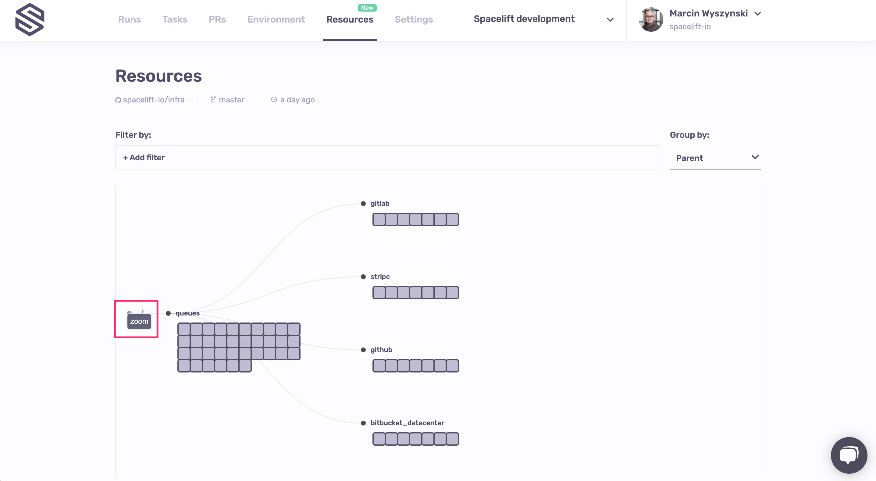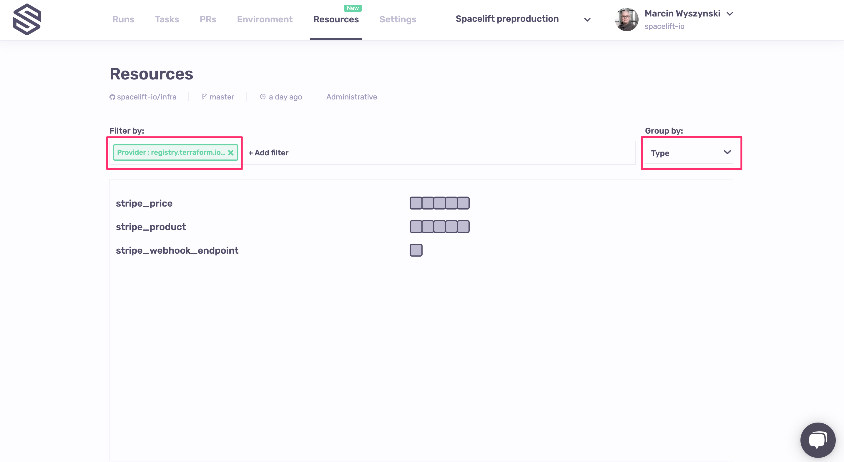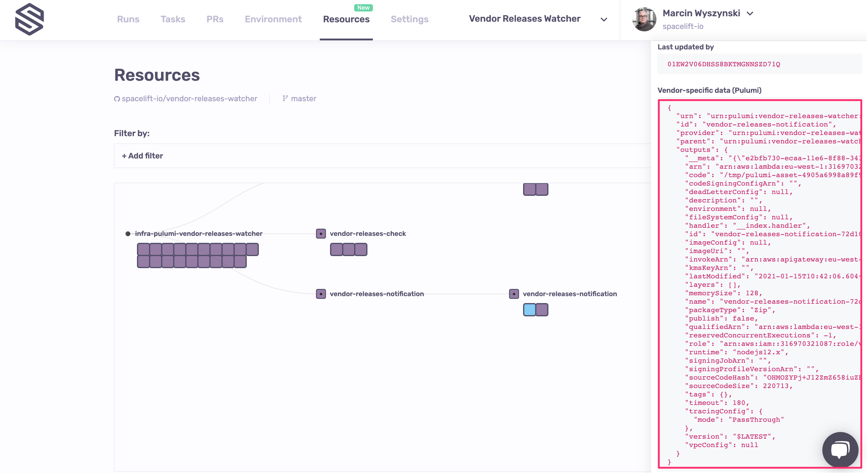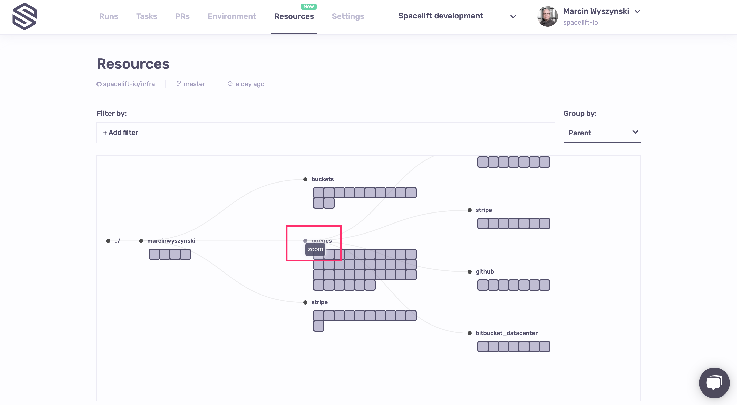The Resources view is the result of multiple months of meticulous work understanding and documenting the lifecycle of each resource managed by Spacelift, regardless of the technology used - Terraform, Terragrunt, Pulumi or AWS CloudFormation.