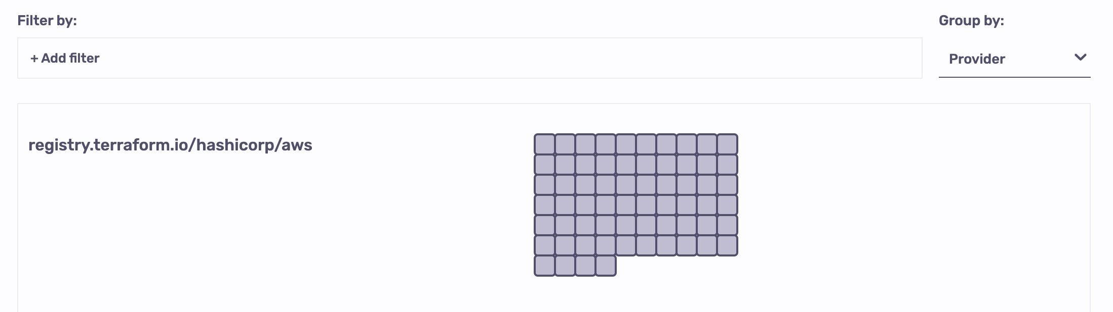 Apart from being grouped by parent, resources can be grouped provider and type. Let's group one of our small stacks by provider:
