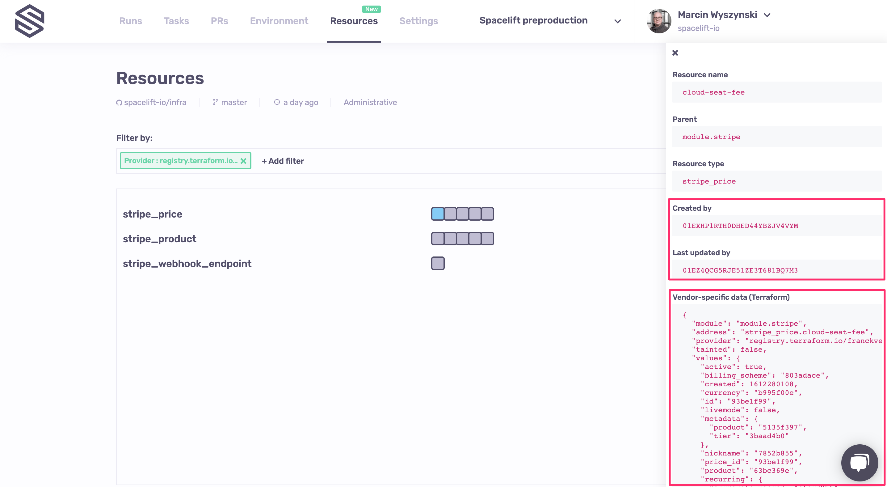 Let's now take a look at one of the resources, for example a single stripe_price: