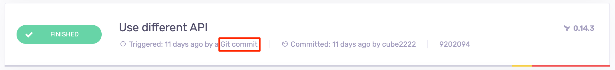 Runs triggered by Git push and/or tag events can are marked accordingly: