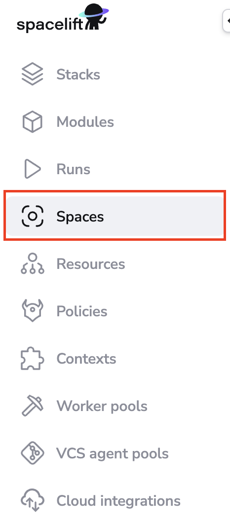 Creating and modifying spaces takes place in the Spaces tab in the UI.