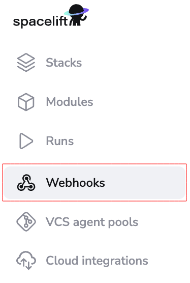 Webhooks can be set up by Spacelift administrators. They can be easily created or modified in the Webhooks section.