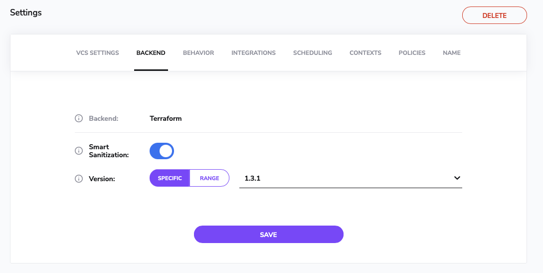 If you're using the Spacelift user interface to create your stacks, you can enable Smart Sanitization in your existing stack settings page under the "Backend" section. If you're creating new stacks it will be an option when you select your Terraform version in our wizard.